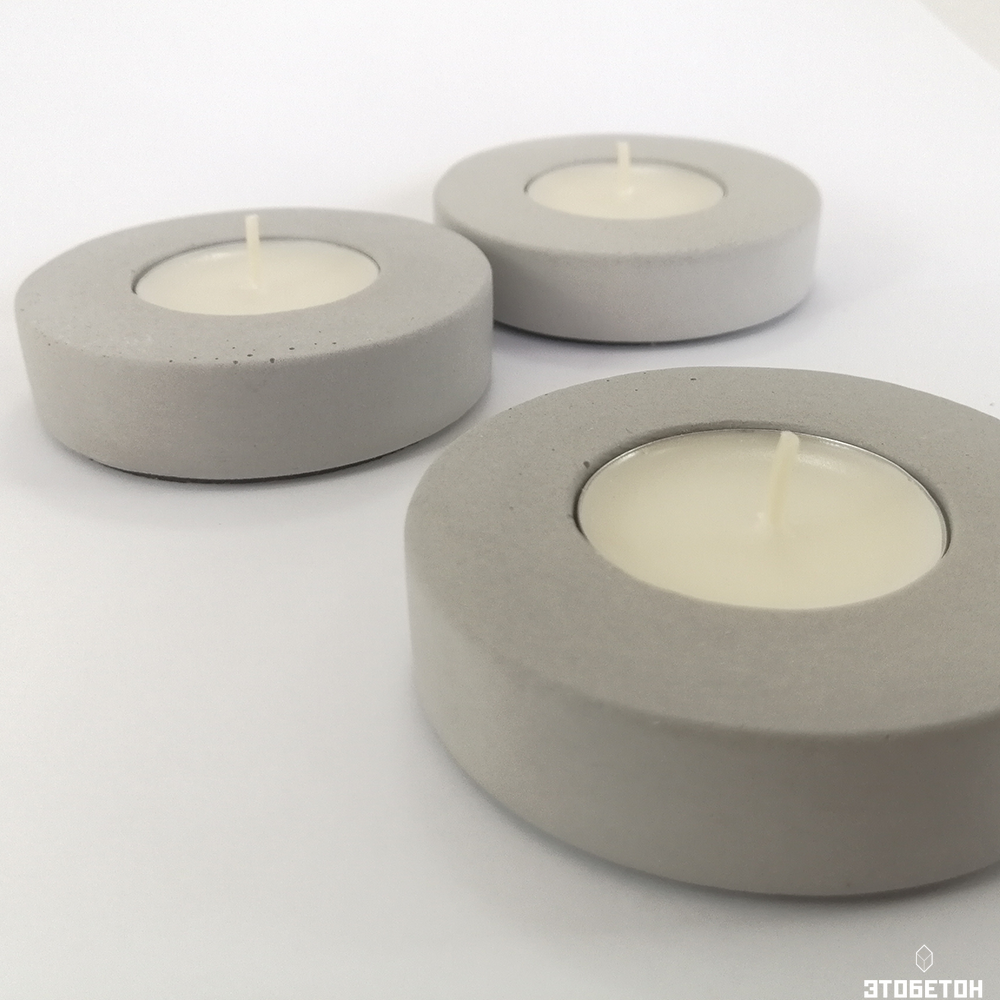 Подсвечник выполнен из композитного бетона, предлагается в комплекте со свечой-таблеткой в алюминевой гильзе. Возможно брендирование изделия путём лазерной гравировки.